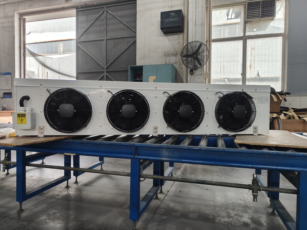 ●Defrosting:standardelectricheatingdefrosting,stainlesssteelheatingpipearedistributedonthecoiltubefinand innerwaterplate,hasagooddefrostingeffect.Youcanalsochoosehotgasdefrostaccordingtocustomer requirements. ●IP65gradewaterproofjunctionbox,withbetterwaterproofeffect. ●Theoutletoftheaircoolerisequippedwithschraderalve,whichisconvenientforuserstodetectpressure.